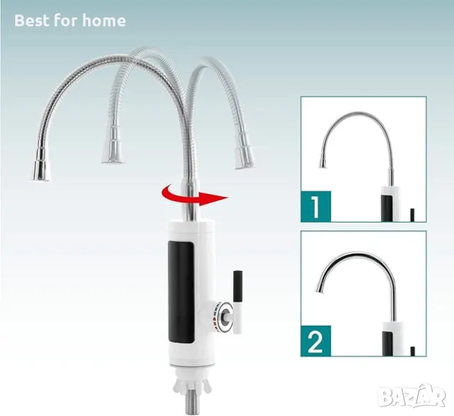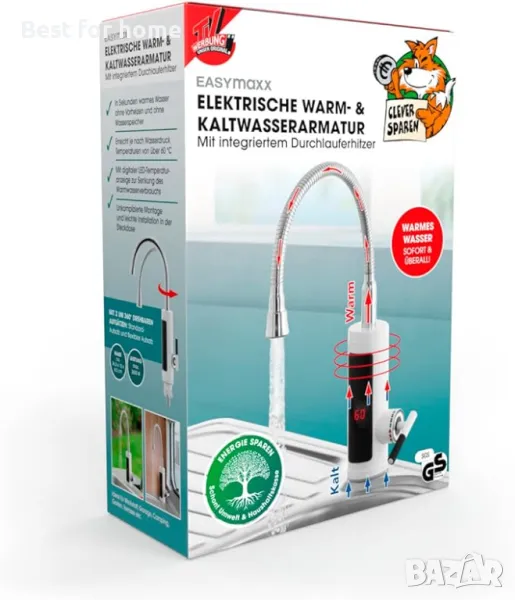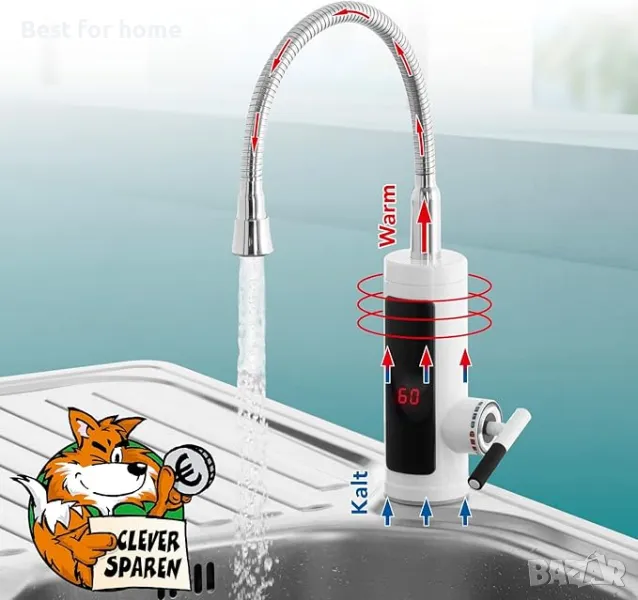 Бързо – топла вода за секунди без предварително загряване и без съхранение на вода. Достига температури над 60 °C в зависимост от водното налягане