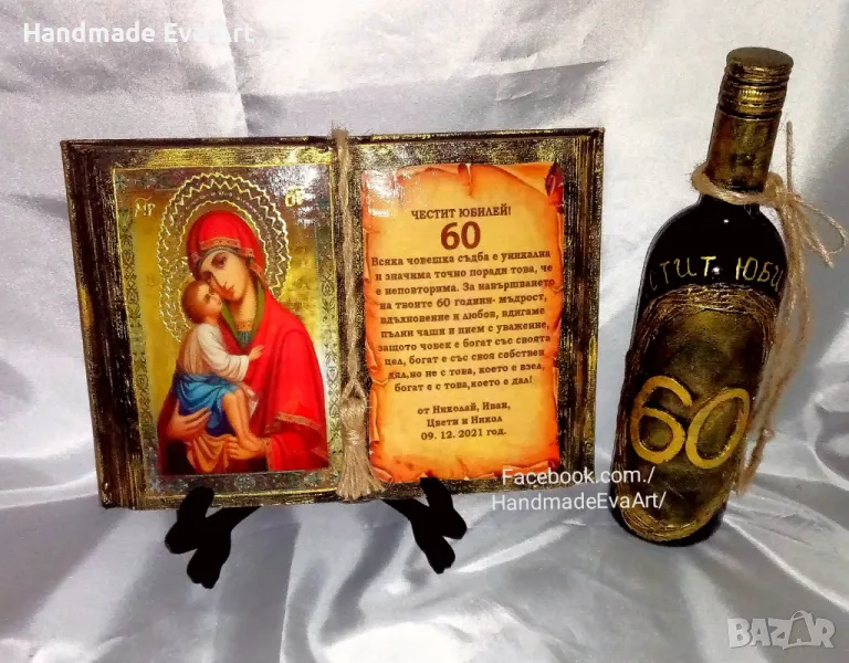 Подарък за Юбилей- ръчно изработени с икона / снимка/ цифри и личен поздрав/ по Ваш избор: