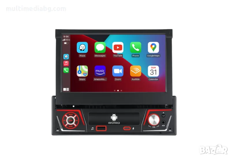 Мултимедия с операционна система андроид Единичен дин с ръчно изваждащ 7 инчов екран подходящ за всички видове автомобили и марки.