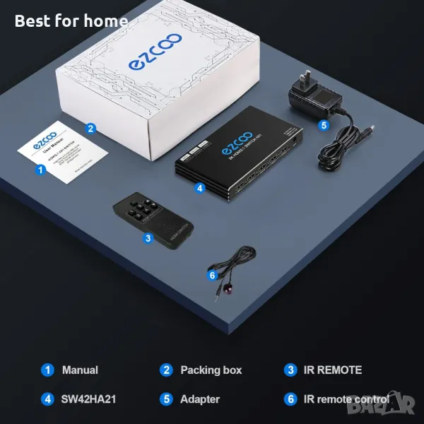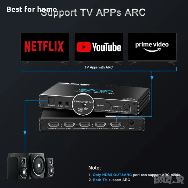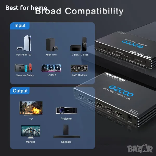 изход, 4 порта HDMI селектор, IR дистанционно, 3D, HDR 10, Dolby Atmos, за QLED TV, PS5, Xbox, Fire Stick, Roku, Blu Ray, проектор
