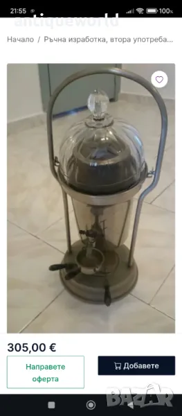 Много Рядка Старинна Кафеварка с Газена Горелка и Стъклен Капак.Датировка от 1910година.Здрава.