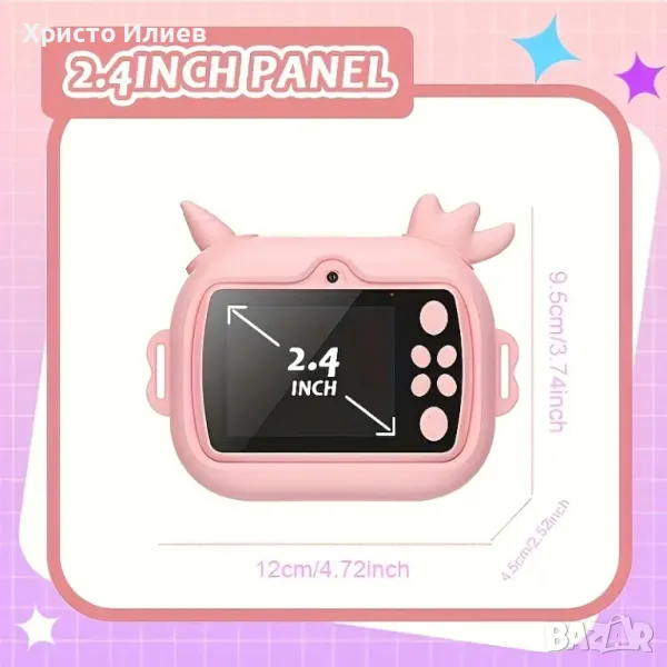 Функции: 1080P HD видео, екран 6.1 cm, 48MP снимки, MP3 плейър, таймлапс, игри и възможност за възпроизвеждане