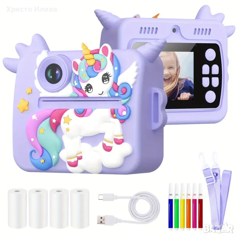 Мигновен детски фотоапарат с иновативна термална технология за черно-бял печат