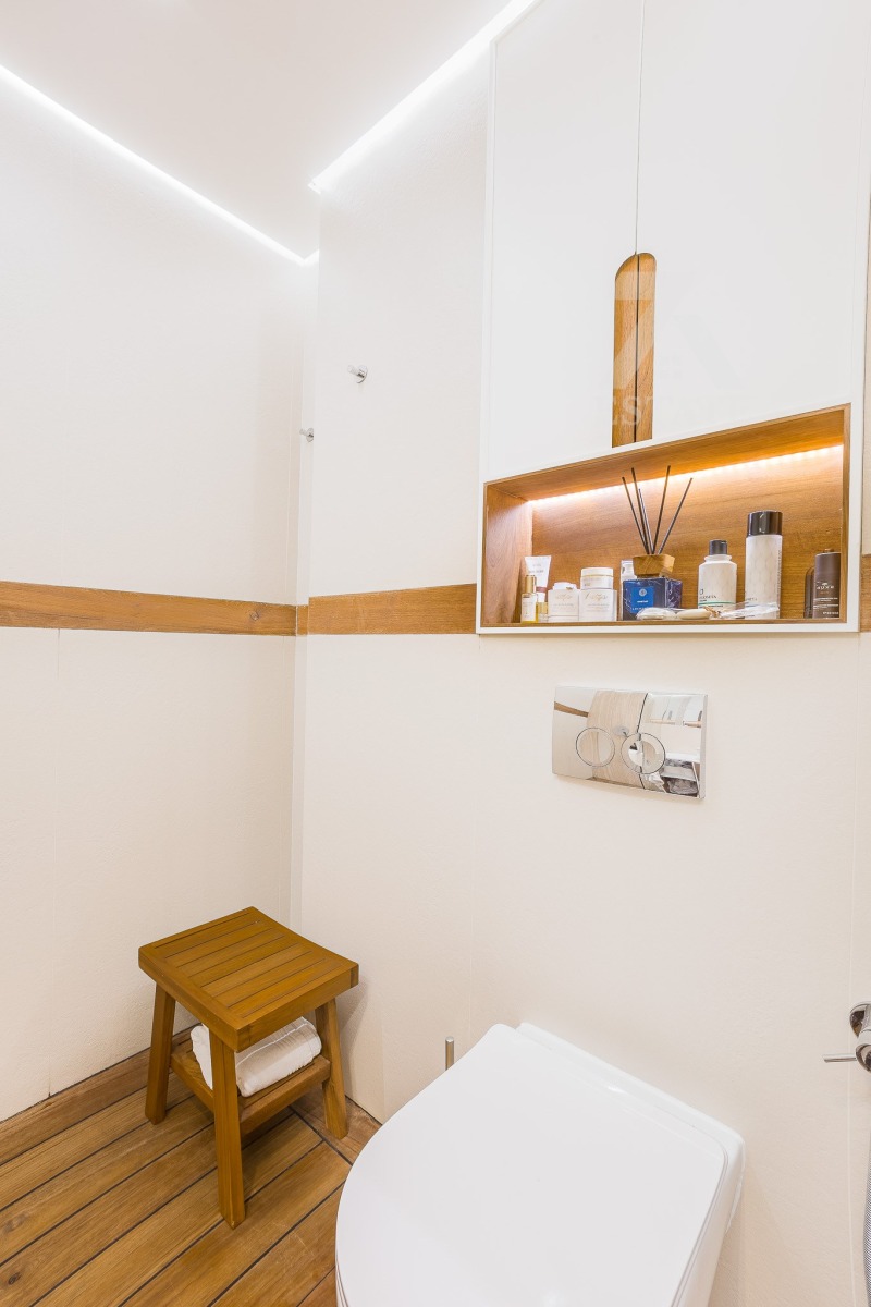 Имаме удоволствието да предложим на Вашето внимание луксозно и стилно обзаведен двустаен апартамент с мебели и настилки от естествени материали!