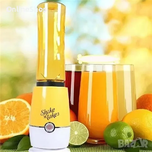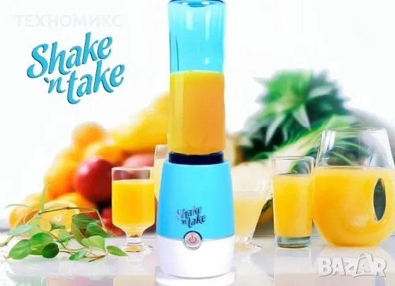 Насладете се на здравословни и вкусни напитки по път за работа. С електрическия блендер Shake N Take бързо и лесно ще си направите шейкове и сокове. Shake n Take е решението на мнозина от нас, погълнати от забързаното ежедневие. С Shake n Take се наслаждавате на порция свежест където и да се намирате – в автомобила, на работа, отлично решение за фитнес, училище, дори и в университета. За нула време ще приготвите вкусни шейкове за цялото семейство. Просто блиндирайте, отвийте и вземете напитката с вас по път за работа или за фитнес залата. Shake n Take е с форма и размери на малка бутилка и пасва на почти всички поставки за чаши. Лесен за използване и почистване. С блендерът – бутилка Shake n Take хапвате леки храни навсякъде, където ви е удобно.