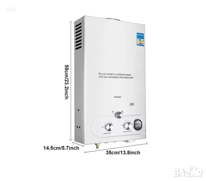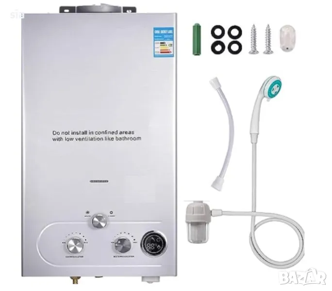 Газов бойлер, Проточен и Преносим бойлер, за къмпинг/ каравана/ кемпер или дом, 6/8/10/16 литра