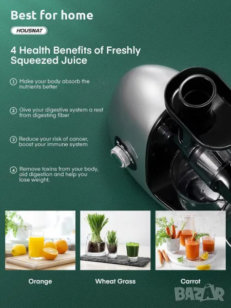 Ако основната ви цел при изцеждането на сок е да подобрите здравето си, тогава дъвчещата сокоизтисквачка Housnat е оптималният избор за вас!