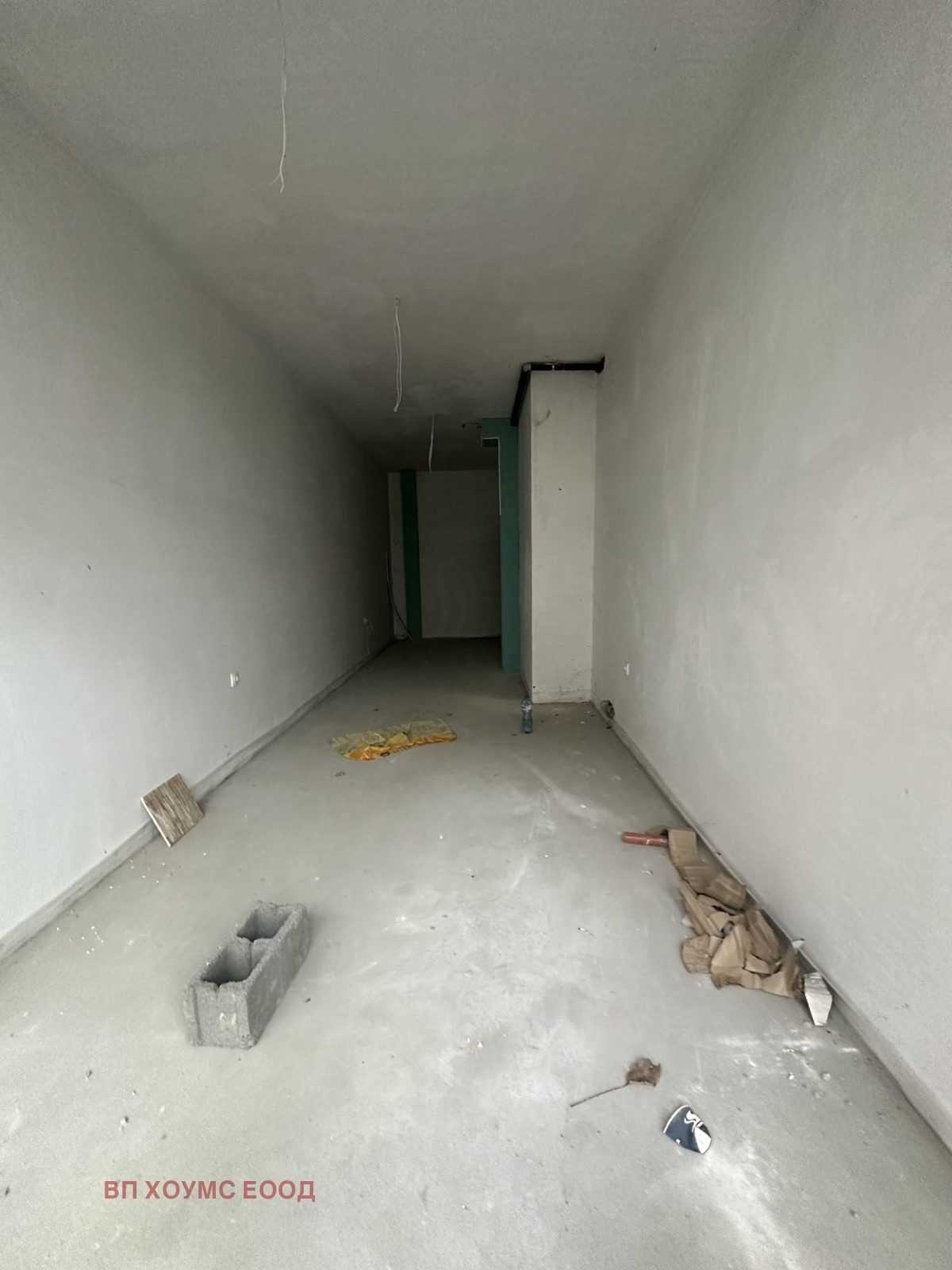 Търговската площ се намира в новоизградена жилищтна сграда с АКТ 16 от 2024г.Разположена на партерен етаж от шест етажа в сградата. Партерния етаж се намират както търговските площи и гаражи. Помещението разполога с търговска част, складово помещене /8/9кв/ и WC.