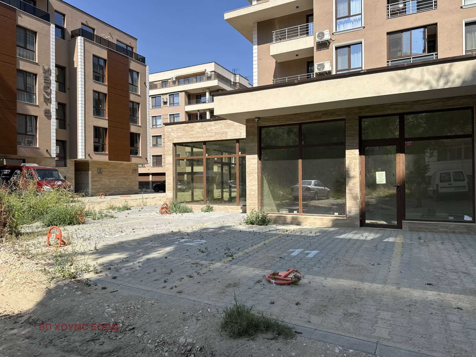 Търговската площ се намира в новоизградена жилищтна сграда с АКТ 16 от 2024г.Разположена на партерен етаж от шест етажа в сградата. Партерния етаж се намират както търговските площи и гаражи. Помещението разполога с търговска част, складово помещене и WC.