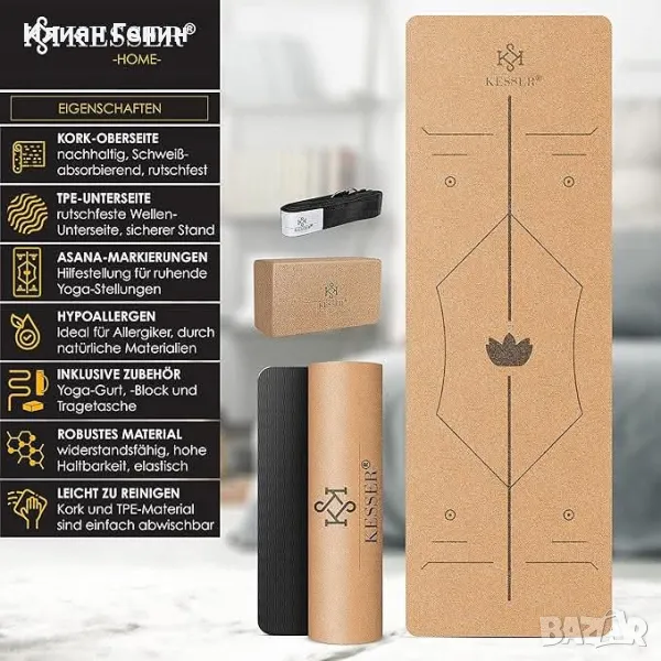 KESSER® постелка за йога корк, включително чанта за носене и блокче за йога 183 x 62 - 90.00лв.