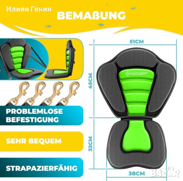 Високо качество: седалката е с размери седалка 32x38cm, облегалка 51x45cm. Меката пяна е удобна, а калъфката се почиства лесно. Облегалката и основата са щедро подплатени за вашето безопасно водно забавление!