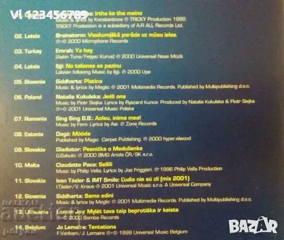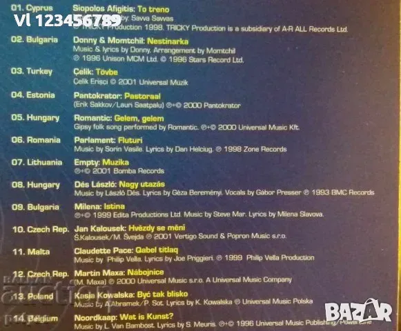 СД -Комплект от два диска вкл. по една съвременна мелодия /шлагер/ от всяка страна част от обединена Европа