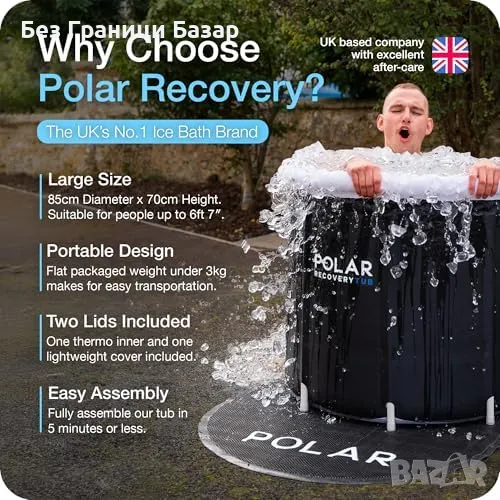 Нова Вана за ледени бани 370L – с капак и термометър, студена терапия