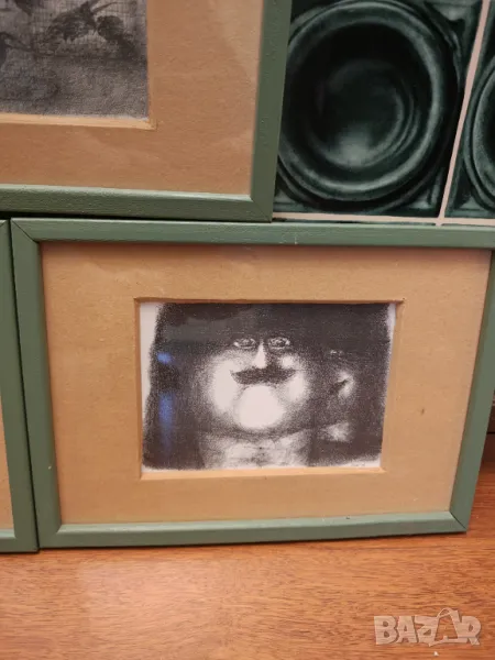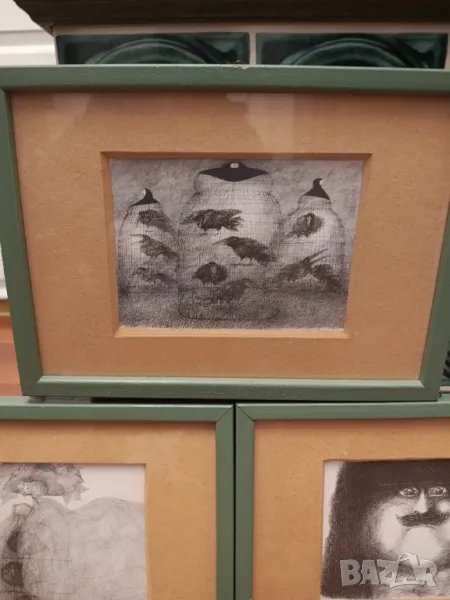 Великолепни абстрактни графики с масивни дървени рамки.Размер 32 на 23 см Само картините 18 на 13 см.Цената е за 3 те не се продават отделно .Крайна цена