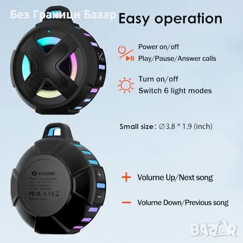 Нов Преносим говорител за душ и басейн – водоустойчив, 10W, RGB Колонка