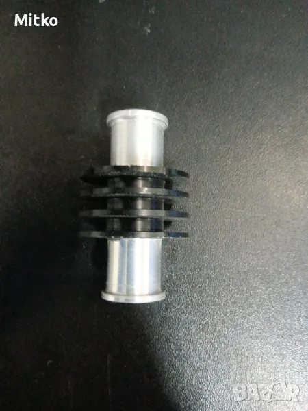 Малък охлаждащ радиатор за скутер/мотоциклет/АТВ с четири ребра. Идеален за допълнително охлаждане на двигателя. Може да се монтира буквално навсякъде по водните маркучи, поради малкия си размер. Изцяло е изработен от алуминий.Моля пишете ми на лично съобщение при интерес,понеже през деня нямам възможност да отговарям на телефонни обаждания. Мога да изпратя по Еконт или Спиди.