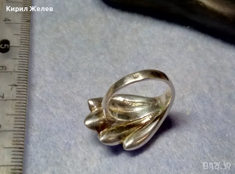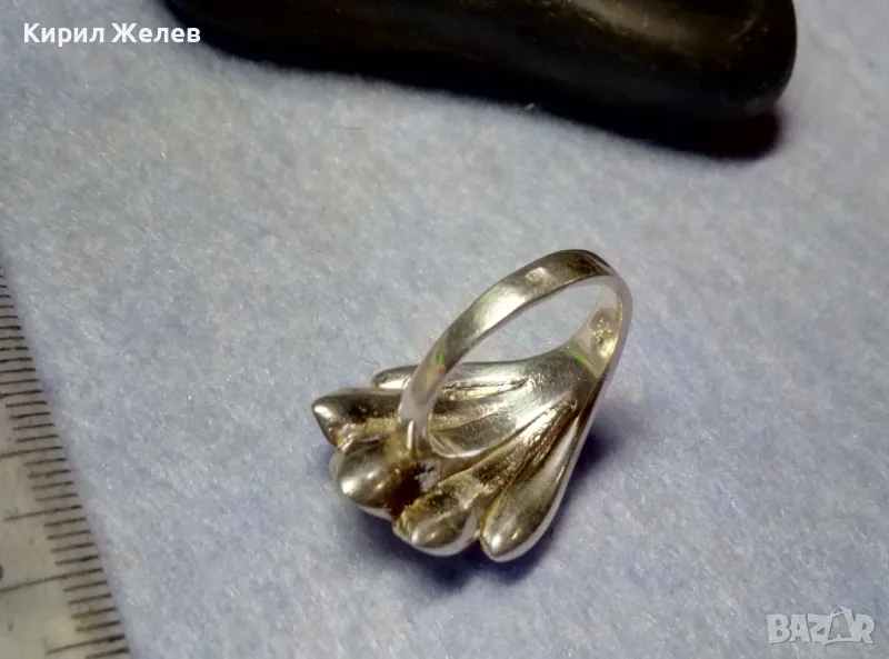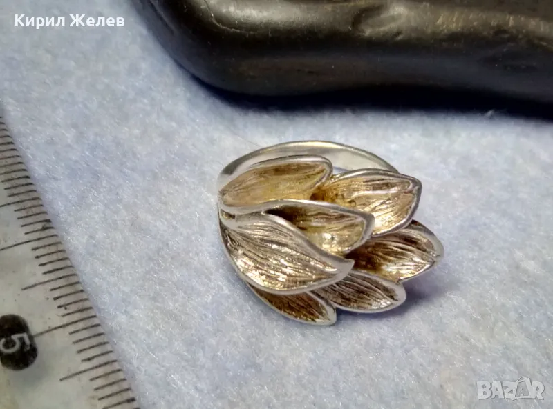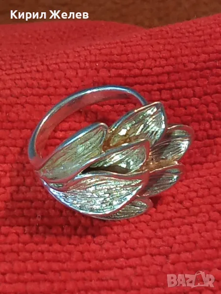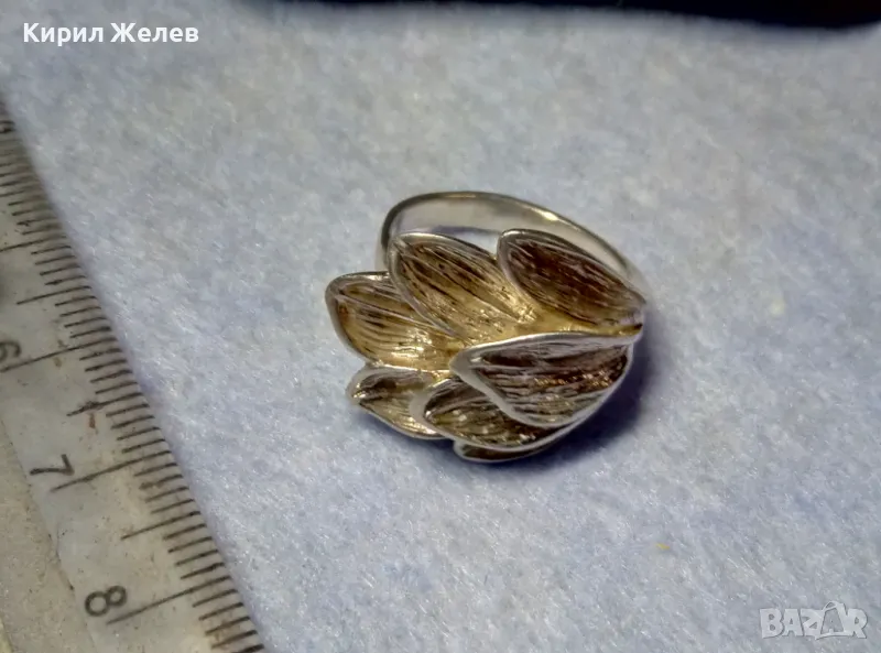 РАЗКОШЕН ФЛОРАЛЕН СРЕБЪРЕН ПРЪСТЕН СРЕБРО 925 с БЯЛА ПОЗЛАТА ХУДОЖЕСТВЕНА БИЖУТЕРСКА ИЗРАБОТКА 49297