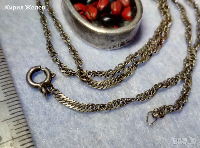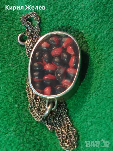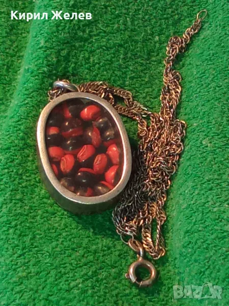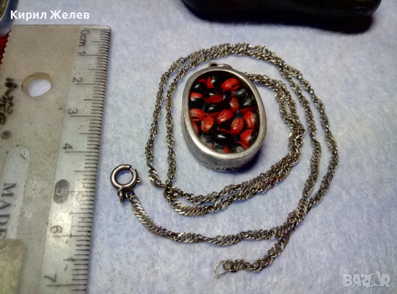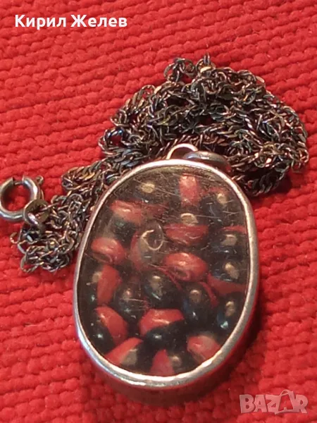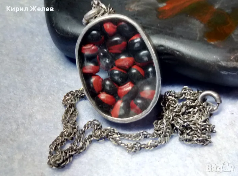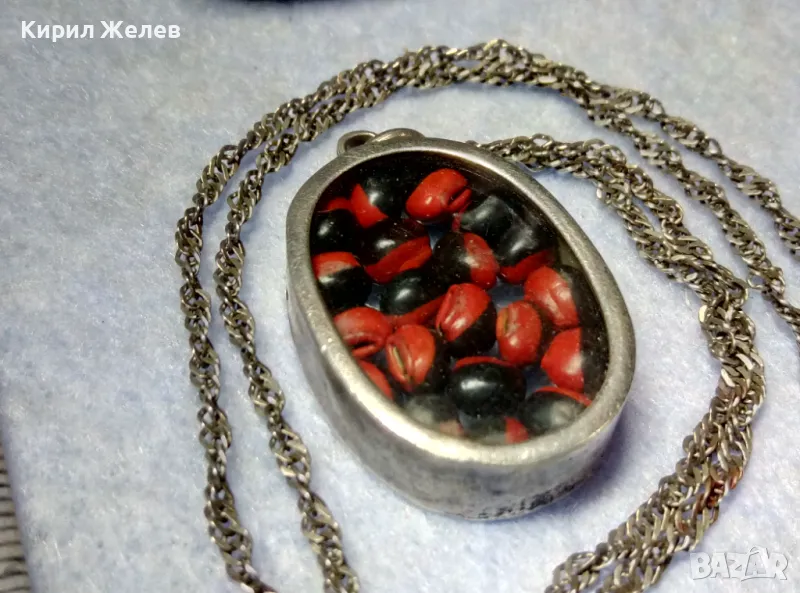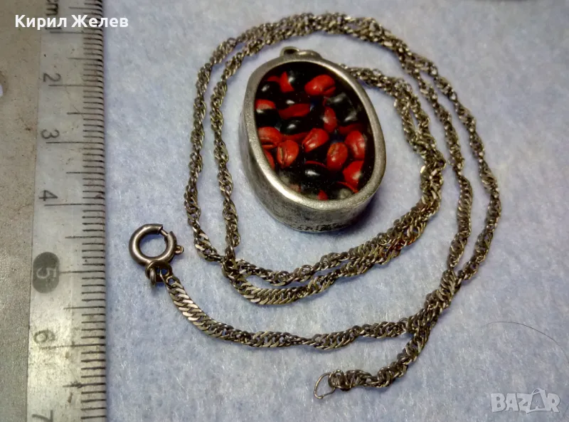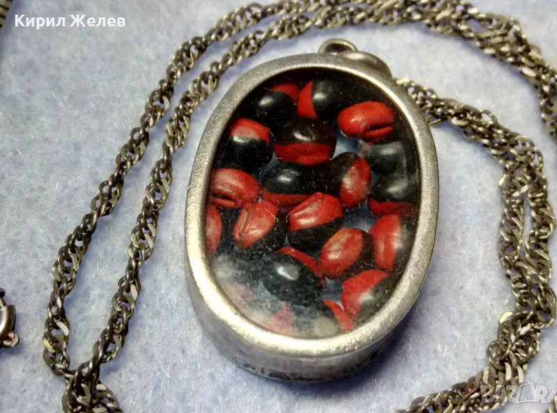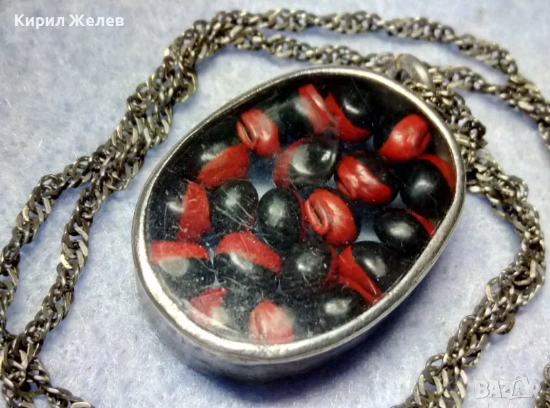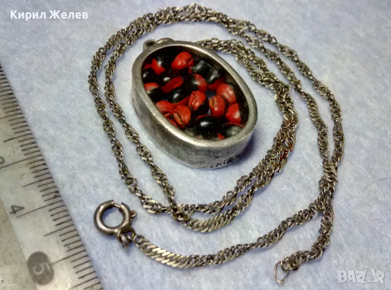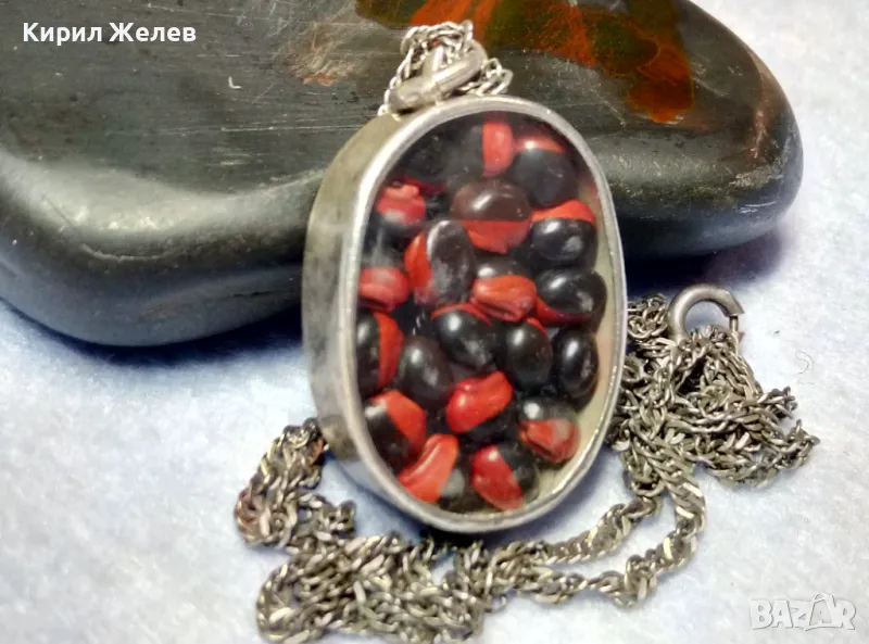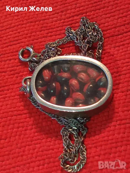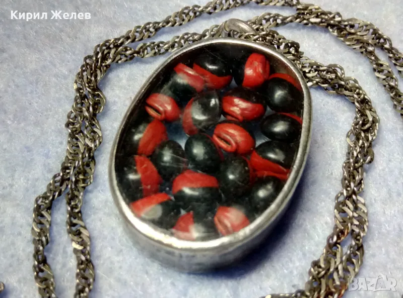 СТАР СРЕБЪРЕН МЕДАЛЬОН Със ЗЪРНА на Ormosia coccinea / wayruru За КЪСМЕТ с ВЕРИЖКА СРЕБРО 925 29143