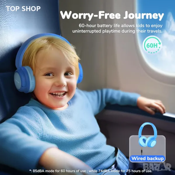 Безжичните слушалки за деца разполагат с iClever Sound Refiner и технология за ограничаване на силата на звука от 85 dBA за двойна защита на слуха, намалявайки високочестотните звуци, които биха могли да увредят слуха, като същевременно поддържа силата на звука под 85 dBA. С Bluetooth 5.4 те предлагат забележителен 60-часов живот на батерията и включват 3,5 мм кабел за непрекъсната игра, когато батерията е изтощена. Изработени от издръжливи, нетоксични ABS материали, тези слушалки са 50% по-здрави от стандартните и са предназначени за тежка употреба. Те са леки, с регулируеми чашки за уши и лента за глава за удобно прилягане за деца на 3 и повече години и използват мека протеинова кожа за минимизиране на натиска в ухото. Акустично проектирани с 40 мм високоговорител за ясен, балансиран звук, те осигуряват лесно Bluetooth сдвояване с различни устройства, осигурявайки безопасно, издръжливо и приятно слушане за децата.