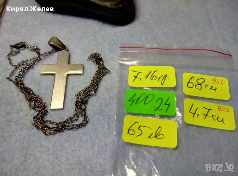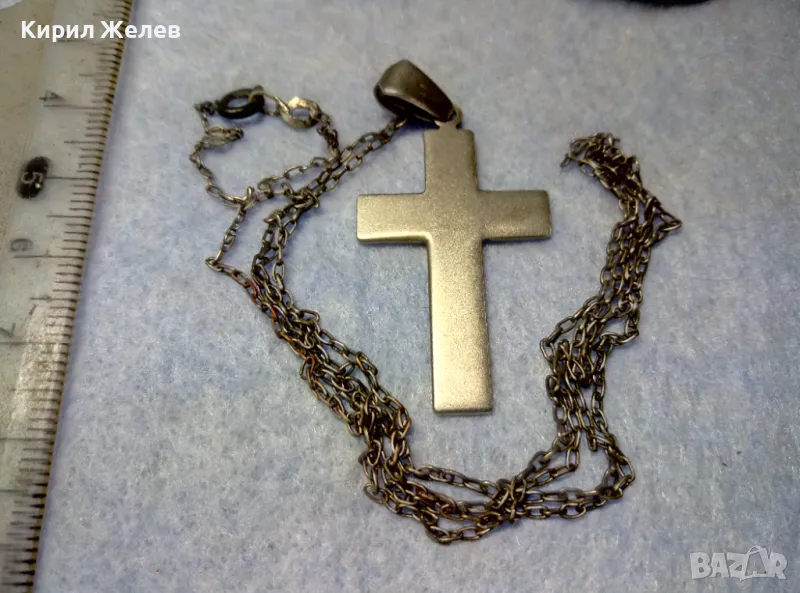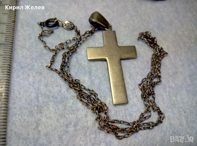 СТИЛЕН СРЕБЪРЕН КРЪСТ МАТИРАНО СРЕБРО 925 сФИНА СТАРА СРЕБЪРНА ВЕРИЖКА СРЕБРО 950 РЪЧНА РАБОТА 40024