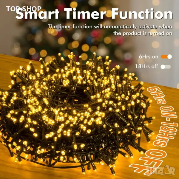 Осветете празничния си сезон с топли бели светлини за коледно дърво Quntis, включващи 1000 красиви светодиода на 25-метрова нишка, която създава топла, привлекателна светлина за вашето коледно дърво и външни пространства. Захранвани с батерии с три батерии с висока мощност (не са включени), тези светлини предлагат функция за интелигентен таймер, която ги включва за 6 часа и изключва за 18 часа, осигурявайки безпроблемна работа. С осем мигащи режима – вариращи от нежно мигане до живи танцуващи светлини – можете лесно да превключвате според вашето настроение или повод. Проектирани с водоустойчив рейтинг IP44, тези светлини са идеални както за вътрешна, така и за външна употреба, като гарантират, че вашите декорации блестят ярко независимо от времето. Универсални за всяко събитие, включително партита, сватби и рекламни изложби, те се доставят спретнато опаковани за лесно инсталиране и съхранение. Насладете се на светъл празничен сезон с тези зашеметяващи светлини, които правят всяка Коледа незабравима.