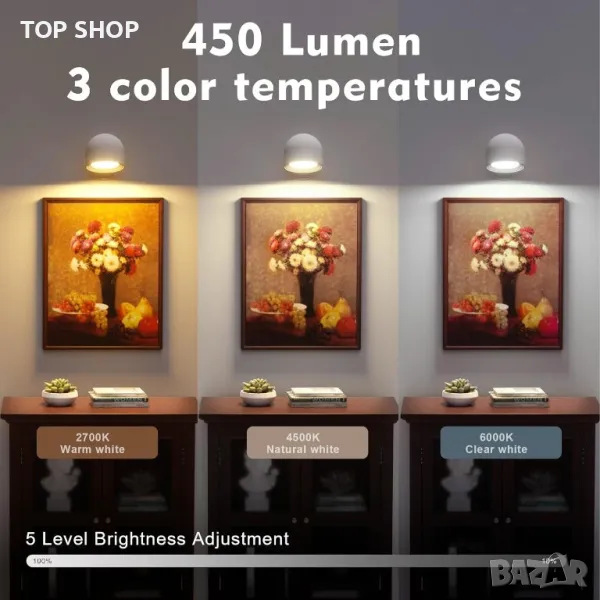 Безжична, магнитна LED стенна лампа с гласово , дистанционно и сензорно управление
