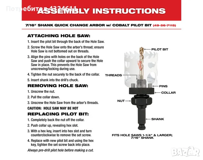 ✅ Универсална съвместимост – Работи с повечето стандартни държачи за боркорони, което я прави удобна за използване с различни инструменти.