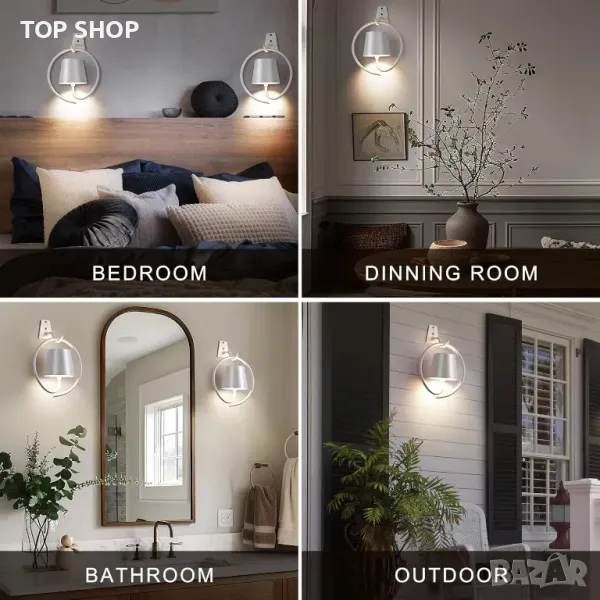 2 бр. Водоустойчиви стенни аплици Faithorse IP54, LED безжични