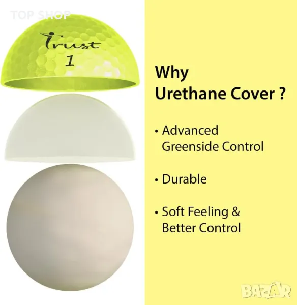 Trust Aurora Топки за голф от 3 части, покритие кристален уретан, динамично ядро K9, жълто, 12 бр.
