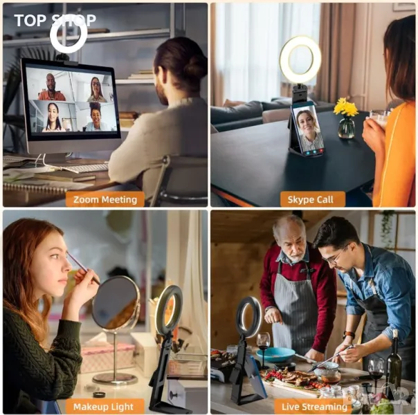 Представяме ви 2023 г. регулируема многофункционална стойка Ring Light, която променя играта във видеоконференциите. Пасва на преносими компютри и настолни компютри, предлага 3 цветови температури, 10 нива на яркост и ротация на 360°. С 60 LED перли за лампа, той осигурява нежно осветление без сенки за видеозапис и фотография без умора. Тази красота с алуминиева обвивка, захранвана от USB, е компактна, лека и универсална за онлайн класове или видеоклипове. Подобрете вашата настройка на осветлението с всичко-в-едно решение на Evershop.