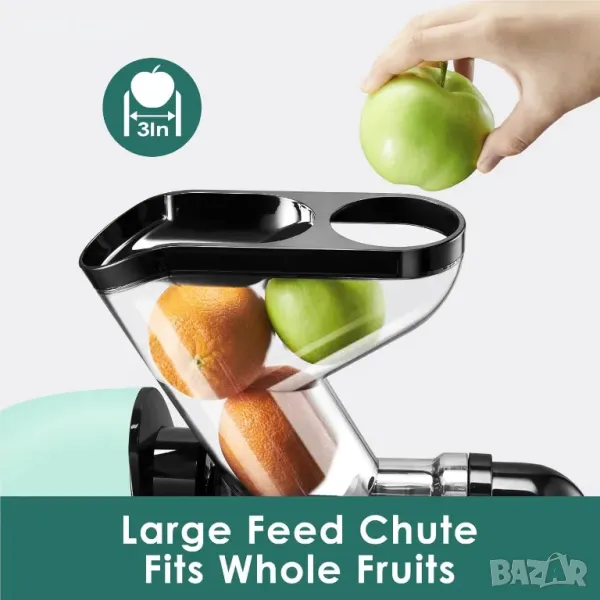 Сокоизстисквачката Fretta разполага с улей от 7,62 см за изцеждане на сок без усилие, без необходимост от рязане, докато нейният материал Tritan без BPA гарантира безопасна и здравословна употреба. Работейки при 80 RPM, тази сокоизстисквачка за студено пресоване максимизира извличането на сок, намалява отпадъците и свежда до минимум запушванията, като същевременно запазва хранителните вещества и подобрява вкуса чрез технология с ниска скорост. Задвижван от тих 200W DC мотор, той използва дизайн с висок въртящ момент за оптимално извличане на хранителни вещества. Освен това, Y-образният улей подобрява безопасността, като предотвратява случайно вмъкване на ръката, а дизайнът на двойния улей позволява непрекъснато подаване на множество съставки, спестявайки време и усилия.