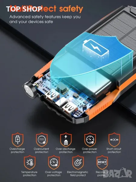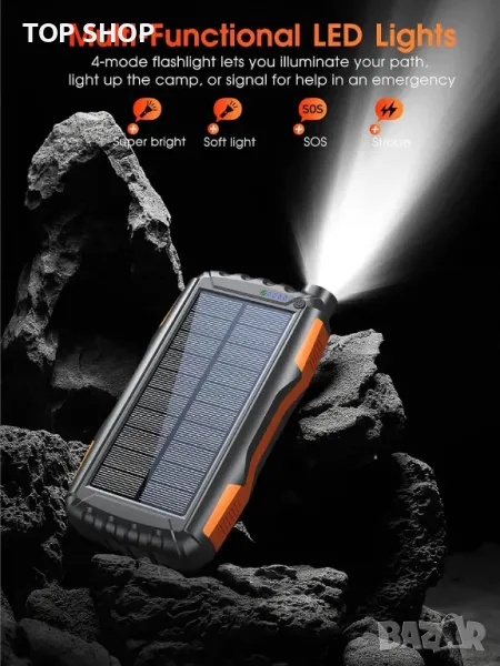 Соларна външна батерия 46800mAh, 3 порта, PD18W QC 3.0 с фенерче, водоустойчива