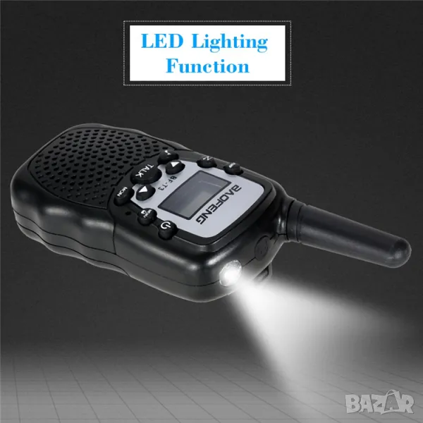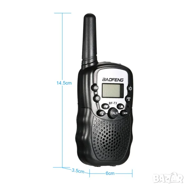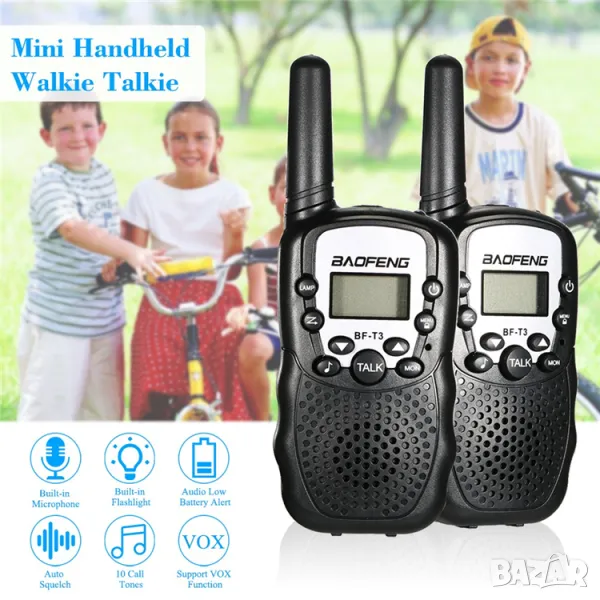 Уоки Токи Baofeng BF T3 Забавни и лесни за употреба, те ще се превърнат във верен приятел на вас или вашите деца. По време на игри, като част от самата игра или дори при друга необходимост, вие винаги можете да разчитате на тях. Получавате звукови сигали с всяко натискане за отговор или потвърждение. Разнообразие от цветове