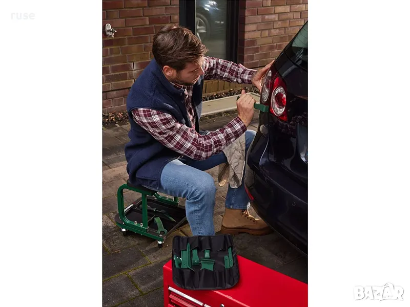 НОВИ! Работна седалка на колела автомоньорски стол до 125кг Parkside