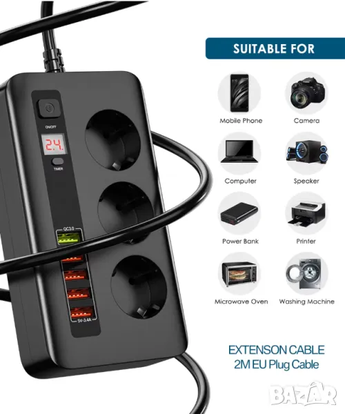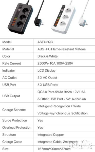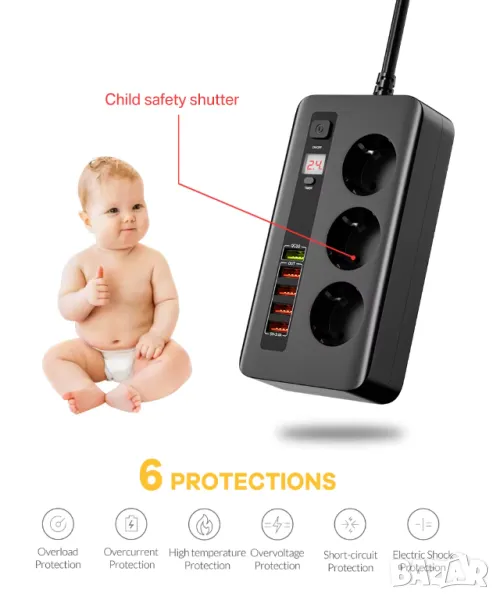 Разклонителят BKL-04EU предлага на практично и елегантно решение за организиране на захранването на вашите устройства. С комбинация от 3 стандартни гнезда и 5 USB порта, той ви позволява едновременно да захранвате и зареждате множество уреди – от телевизор и лаптоп до смартфони и таблети. Основата на продукта е неговата комплексна защита: вграден прекъсвач предпазва от късо съединение и пренатоварване, а висококачествената електроника филтрира смущенията от мрежата и помага да се предпазят чувствителните електронни устройства. Със защитен бутон, кабел с дължина 2 метра и компактни размери, той е идеален помощник за дома или офиса, който носи ред и безопасност.