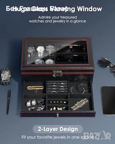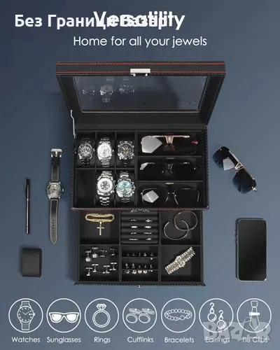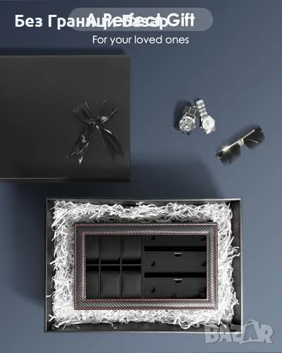 Кутия с 6 отделения за часовници, 3 за слънчеви очила и чекмедже за бижута