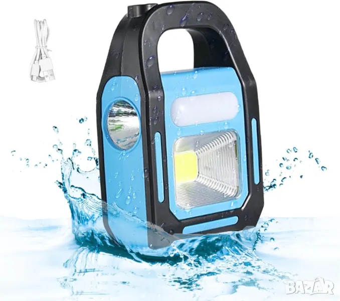 Тази работна лампа е акумулаторна и е подходяща за повечето ситуации на закрито и на открито. Тя разполага с опции за USB и соларно зареждане, така че никога да не останете без енергия. С IP65 водоустойчив рейтинг, той може да издържи на дъжд. Може да се използва за осветление, спешни случаи и зареждане на мобилен телефон.