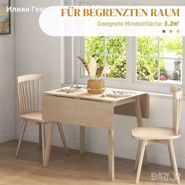 ✔ Сгъваемата маса с две сгъваеми страни предлага място за 2 или 4 души