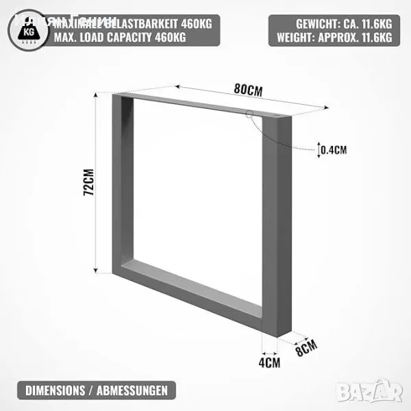 крака за маса, индустриален стил, правоъгълни, 80 x 72 cm - 200.00лв.