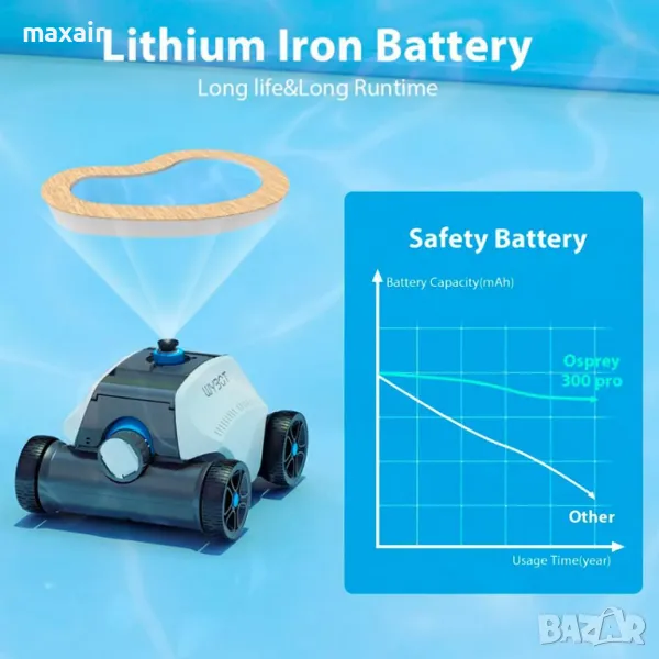 – “Self-beaching” технология – придвижване към края на басейна, когато батерията намалява