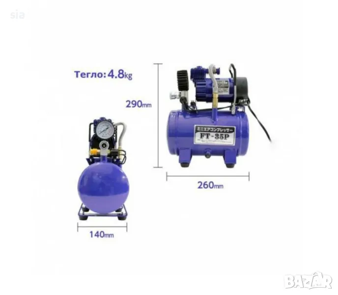 компресор не се нуждае от захранване, след като му напълните въздушният резервоар. Тази прикрепена бутилка към него го прави много подходящ за напомпване на играчки, дюшеци на плажа в двора т.н., там където нямате възможност за включване в 12 волтово напрежение.