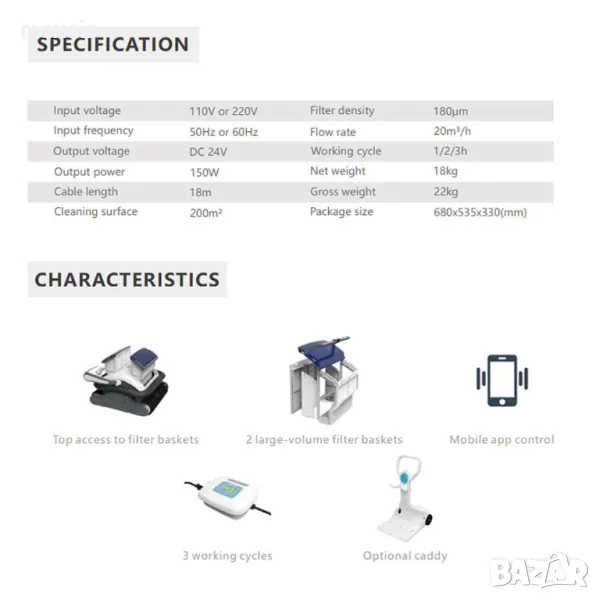 – 3 режима на движение – пълно почистване, дъно, стени/водна линия