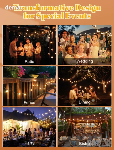 LUCUHM 15 метра Градински гирляндни LED светлини с дистанционно