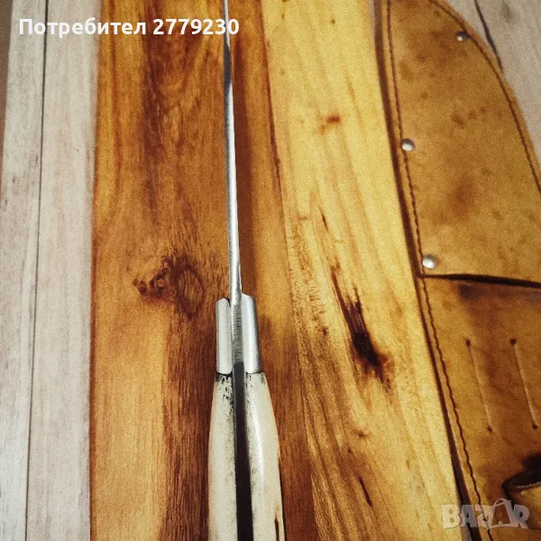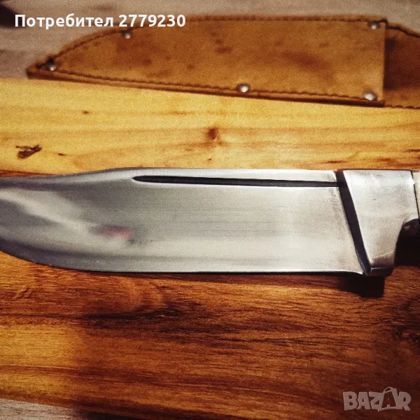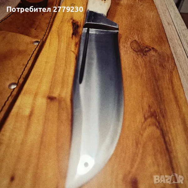 Ловен нож ръчна изработка с дължина на острието от 15 см, ширина 4 см., с канал, обща дължина 28 см. Дръжка от рог на елен. При интерес пишете или се обадете.