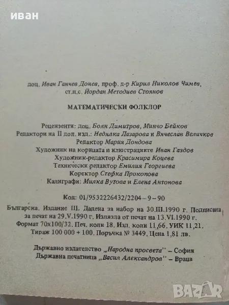 Математически фолклор - И.Ганчев,К.Чимев,Й.Стоянов - 1990г. → Обява 49870017