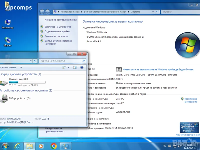 Компютъра е в напълно изправно положение. Всичко работи по него без проблем с Windows 7 32 bit