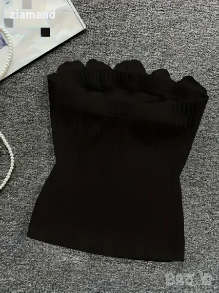 Дамски топ с декорация розички, без презрамки - плетиво