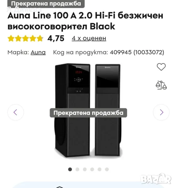 Auna не са тествани защото както се вижда на снимките са изкорени незнайно защо. Внос от Германия Auna Line 100 A 2.0 трипосочни високоговорители на пода обогатяват всяко мислимо място със своя привлекателен дизайн, висока производителност и широки функции. Компактният auna Line 100 A 2.0 разполага с 8 "OneSide субуфер, 4" среден и 1 "пищялка на високоговорител. Музикалното съдържание се възпроизвежда с мощност от 40 вата RMS / 80 макс. Основните характеристики включват SD слот и USB порт за надеждно възпроизвеждане на MP3 файлове. Функцията Bluetooth е способна безжично да свързва музика към високоговорителите чрез смартфон. Стерео аудио входът допълва репертоара за свързване на стилните подови високоговорители. Субуферът OneSide осигурява забележително пълен бас и стая -запълващи звуци. Ясният LED дисплей с гладки бутони и включено дистанционно управление правят работата с високоговорителите особено удобна.