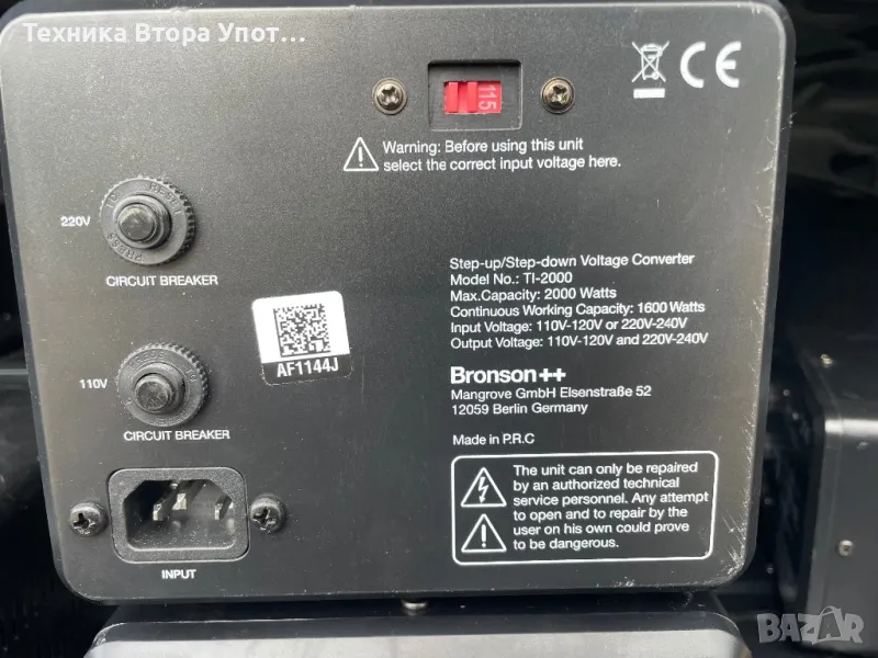 Трасформатор BRONSON ++ , 220V/110V, 115V/220V 2000VA, снимка 1 - Друга електроника - 49870393 Трасформатор BRONSON ++ , 220V/110V, 115V/220V 2000VA, снимка 2 - Друга електроника - 49870393 Трасформатор BRONSON ++ , 220V/110V, 115V/220V 2000VA, снимка 3 - Друга електроника - 49870393 Трасформатор BRONSON ++ , 220V/110V, 115V/220V 2000VA, снимка 4 - Друга електроника - 49870393 Трасформатор BRONSON ++ , 220V/110V, 115V/220V 2000VA, снимка 5 - Друга електроника - 49870393 Трасформатор BRONSON ++ , 220V/110V, 115V/220V 2000VA, снимка 6 - Друга електроника - 49870393 1/6