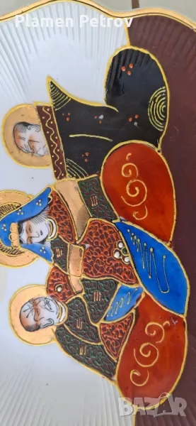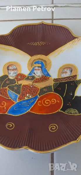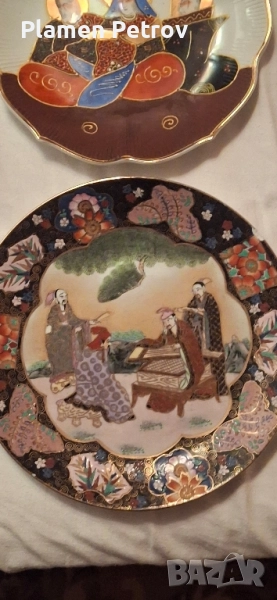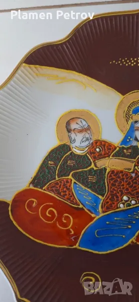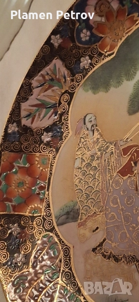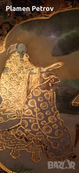 Порцеланова чиния Satsuma 26см диаметър, ръчно рисувана с позлата, щемпели отзад на снимката 110лв
